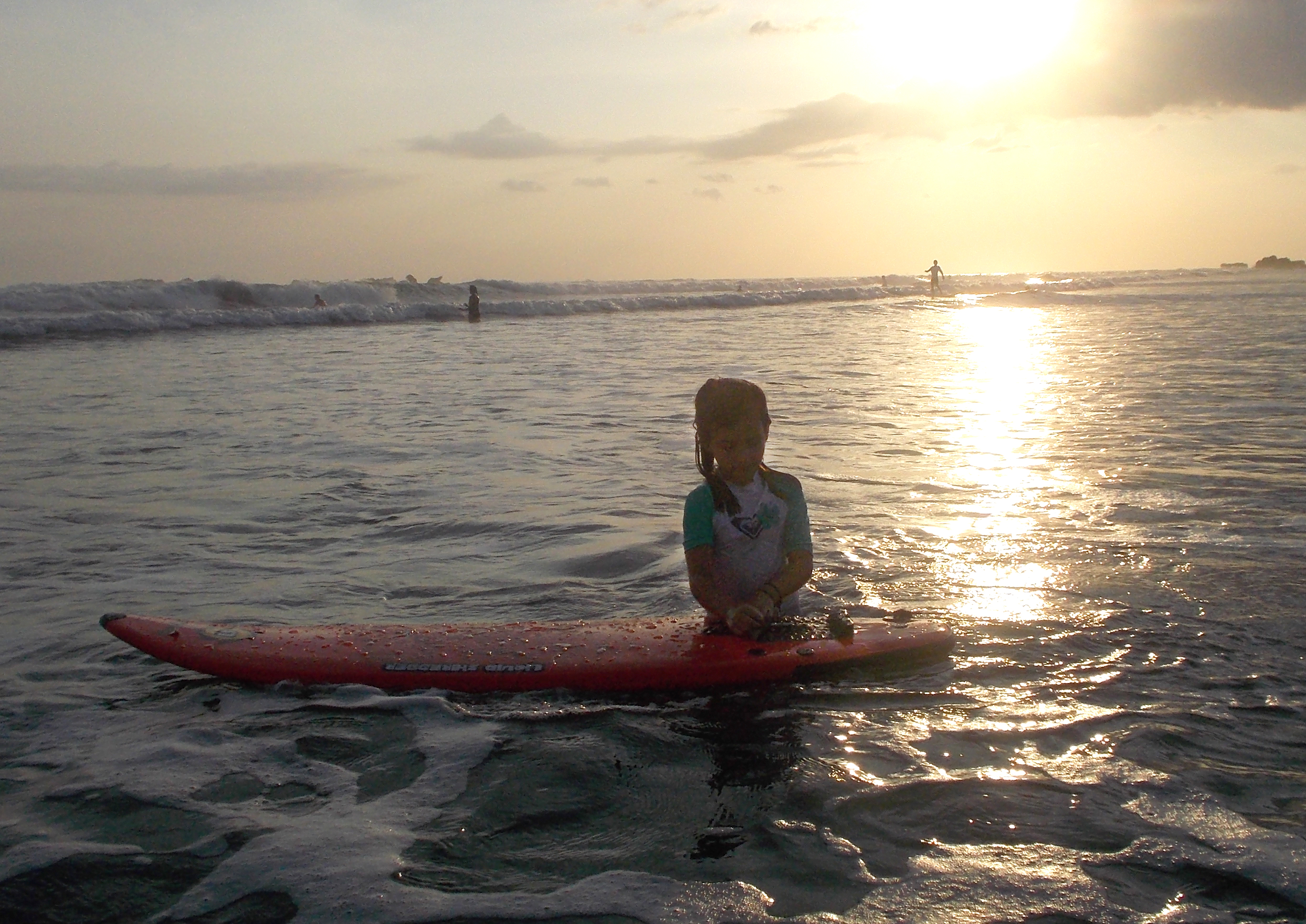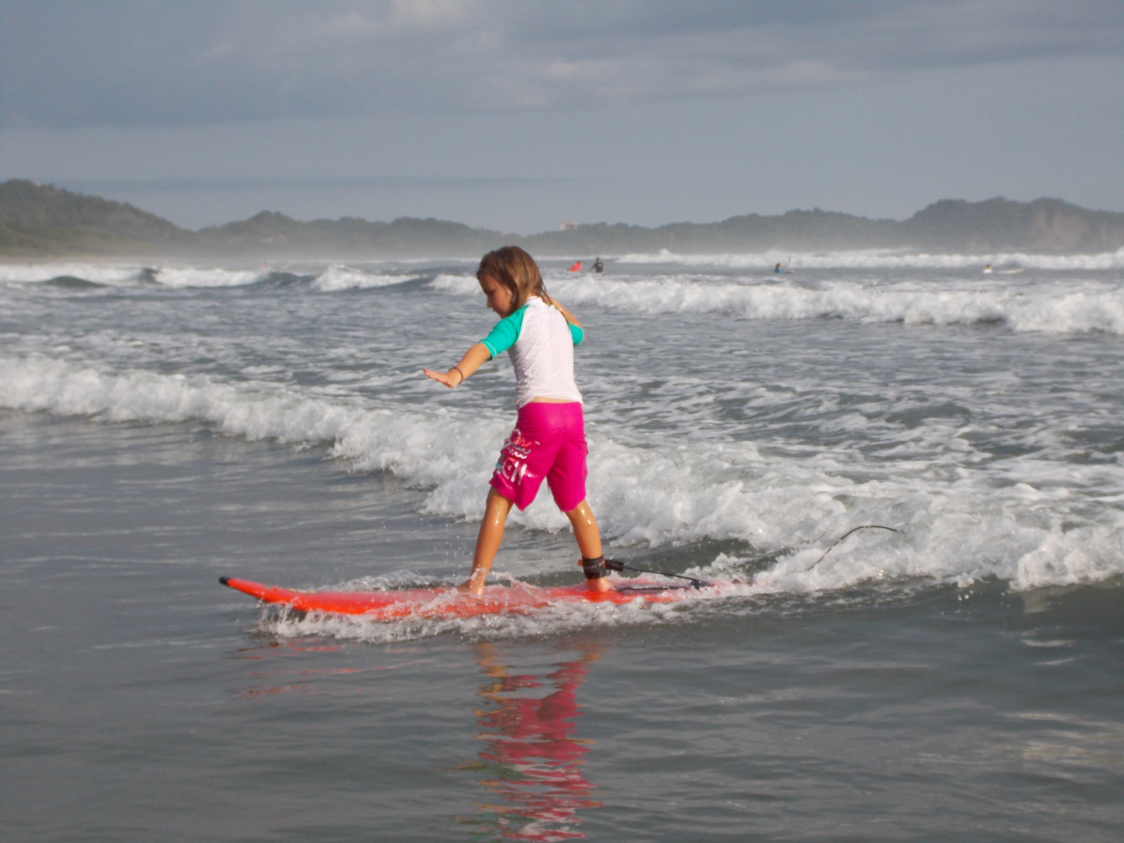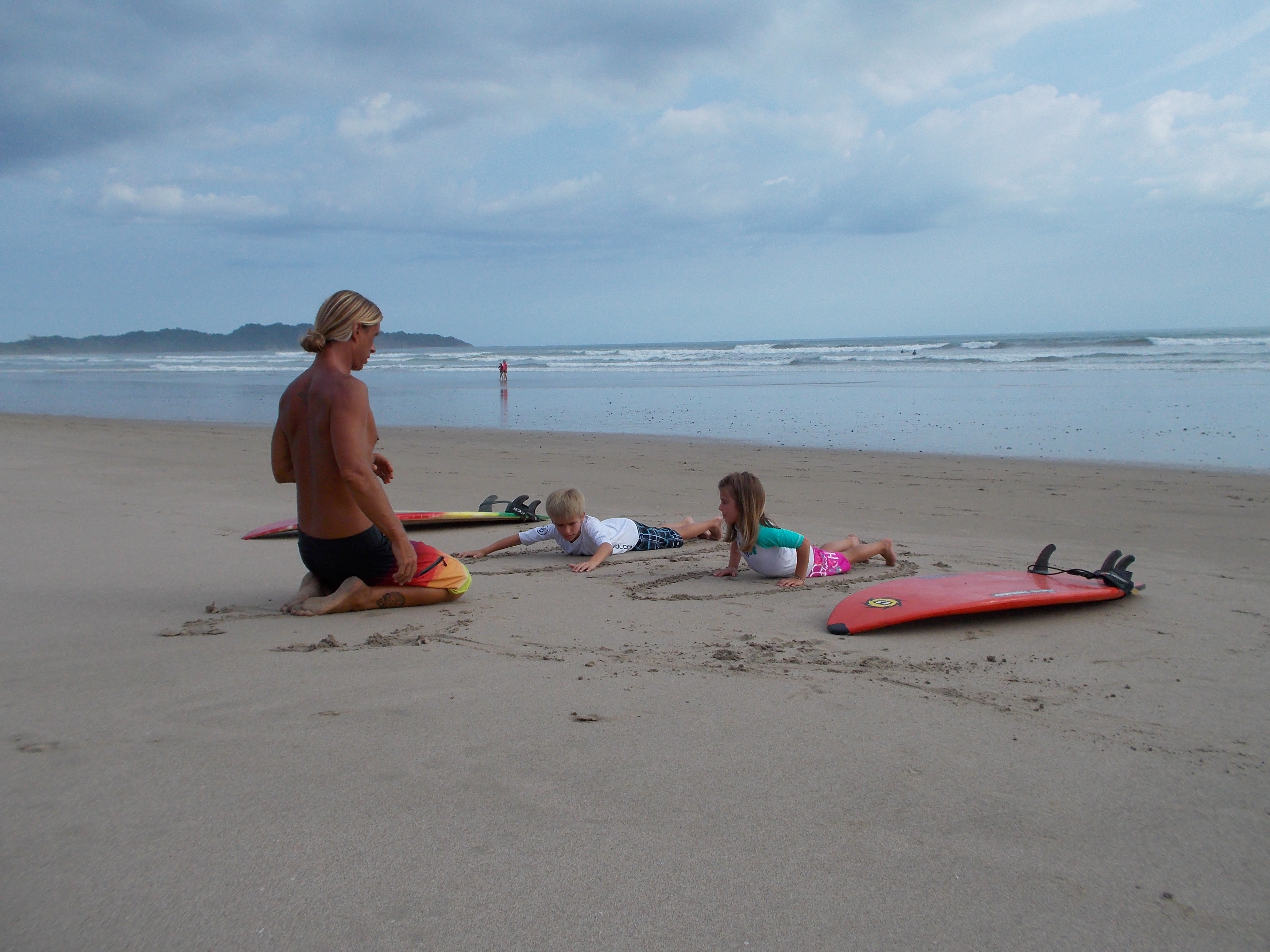 We had tried to get the kids in surf lessons the first week, but with their love for boogie boarding and a mistakenly scheduled lesson by me on Sunday, we hadn’t gotten them out before their camp started. So we went ahead and arranged their first lesson for today, after we picked them up from camp at 3pm. The low tide would only be in the late afternoon for 2 more days this week, and I checked with the kids and they said that indeed they were up for it even if it was after camp.