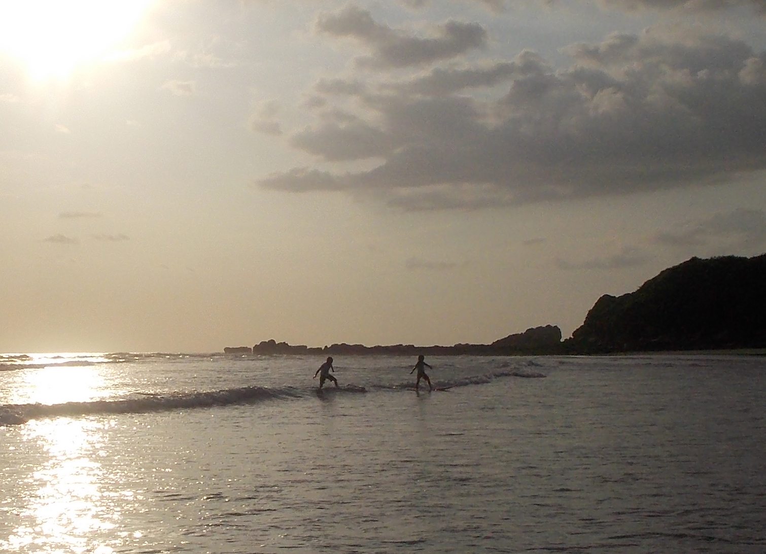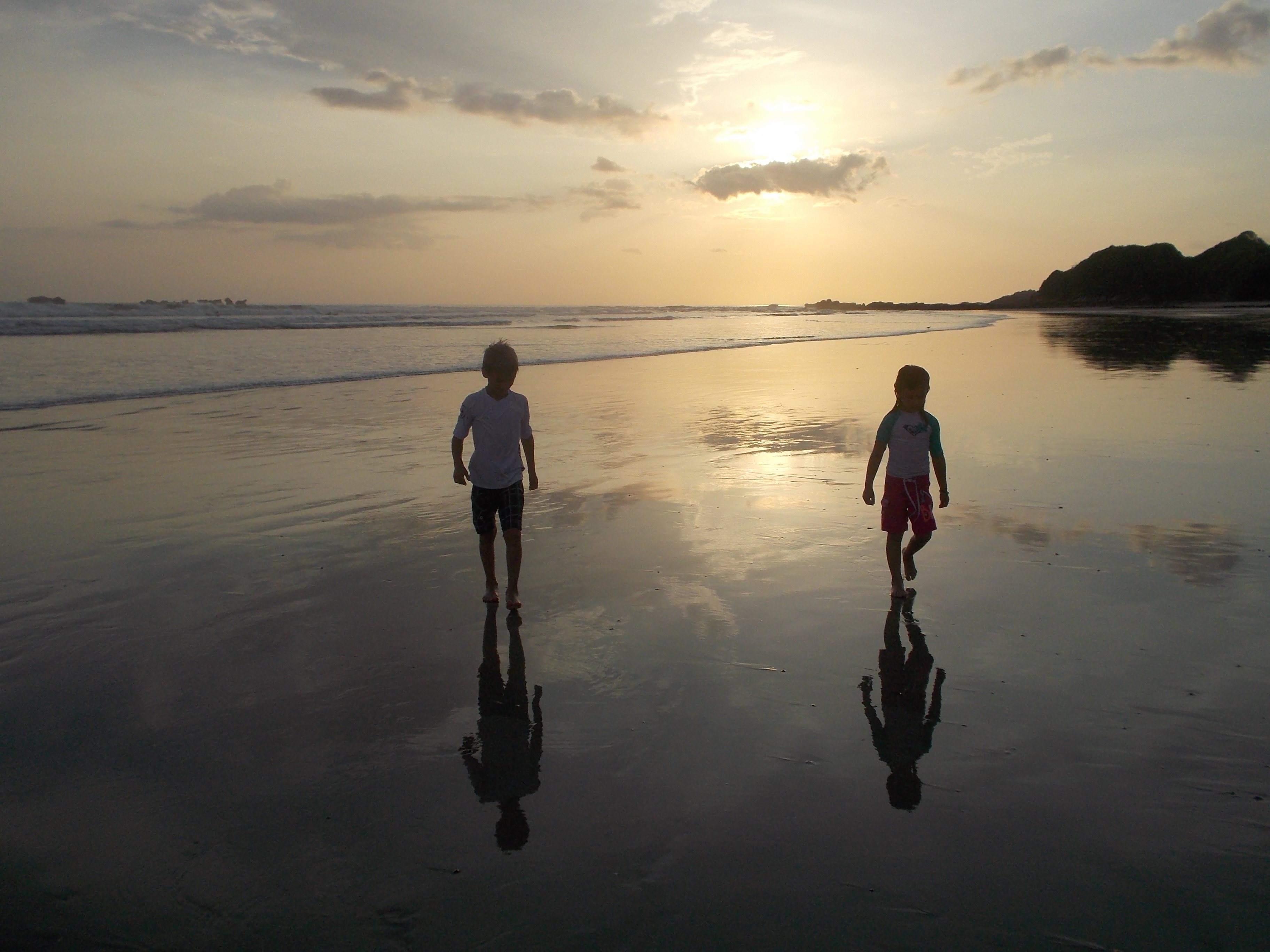 By the time we all got out of the water it was 5:40, just a half hour until sunset. So we decided to stick around the beach and watch the sunset. In doing so, we met the owner of one of our house dogs, a visiting family who lives in Santa Rosa, and another family who just moved here originally from Napa, who moved here to help run the school the kids are going to camp at!