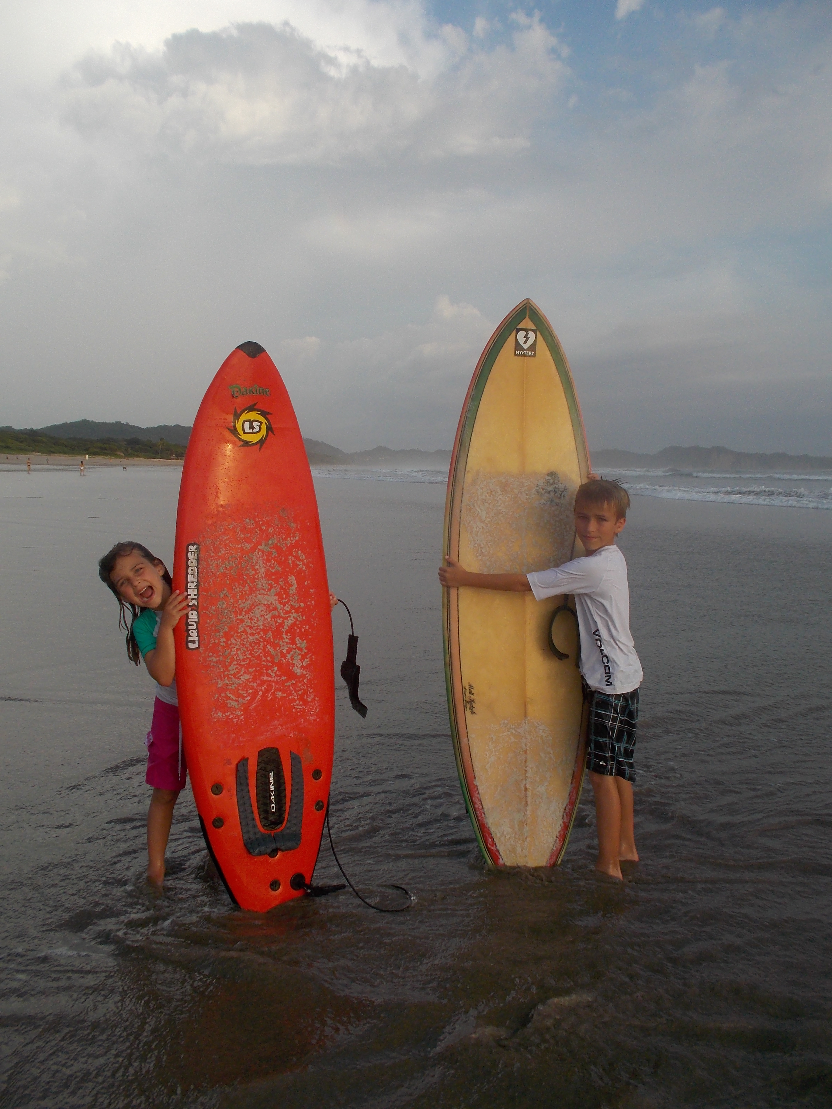 As the clouds came in at 3pm, I began to wonder if we’d have the typical afternoon thunderstorm and have to cancel the lesson. It started to pour down rain as we walked over to Nosara Surf Academy. The kids were not too concerned about it though, and by the time the instructor arrived and began choosing their boards, the rain had stopped.