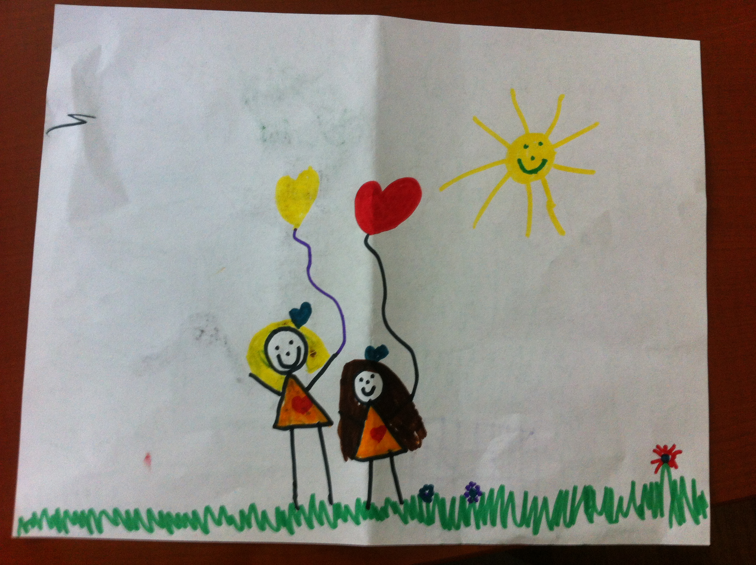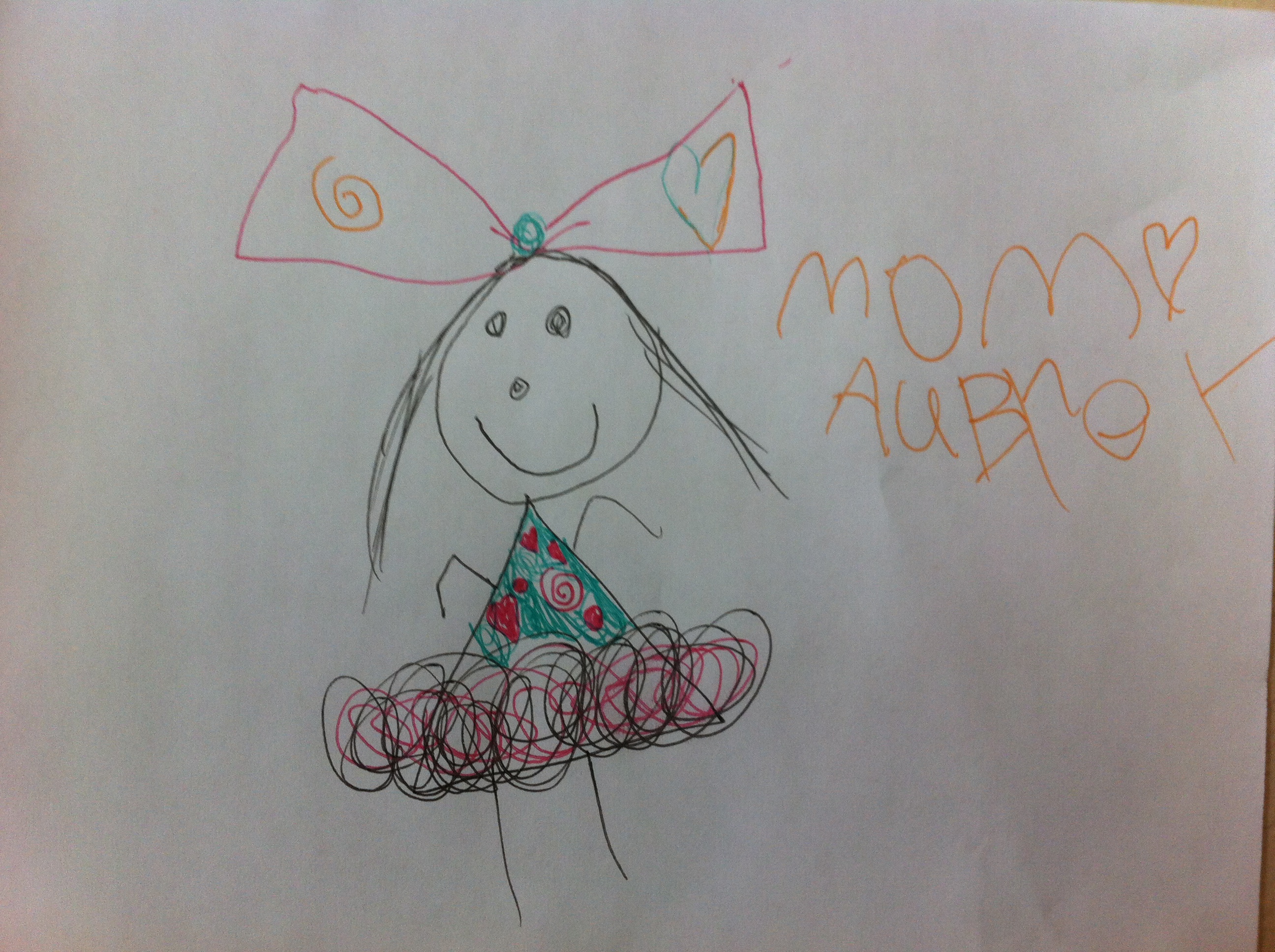 Aubrey’s kindergarten ends at 1:30 each day, but she doesn’t like to leave school before Rylan’s class is done at 3pm, so we’ve enrolled her in the aftercare program each day. She really loves it — they play on the playground or in the art room every day. I continue, as in preschool, to be showered with adoring pictures like these ones of Aubrey and I together, many saying “I love mom” all over them.