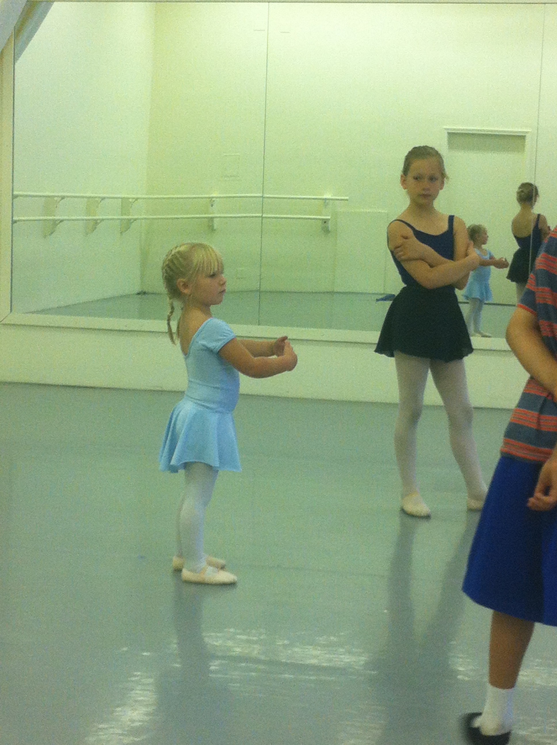 When I realized that I really don’t get to see much of the game when we’re there, I decided I might as well take Sierra to Saturday morning ballet class rather than hovering around the field all morning. Sierra absolutely loves going to dance class. Even though she’s one of the youngest in the class of about 8 little girls (the older children in this pic are assistants), she is one of the best at following along with the instructions. She’s a very attentive student.