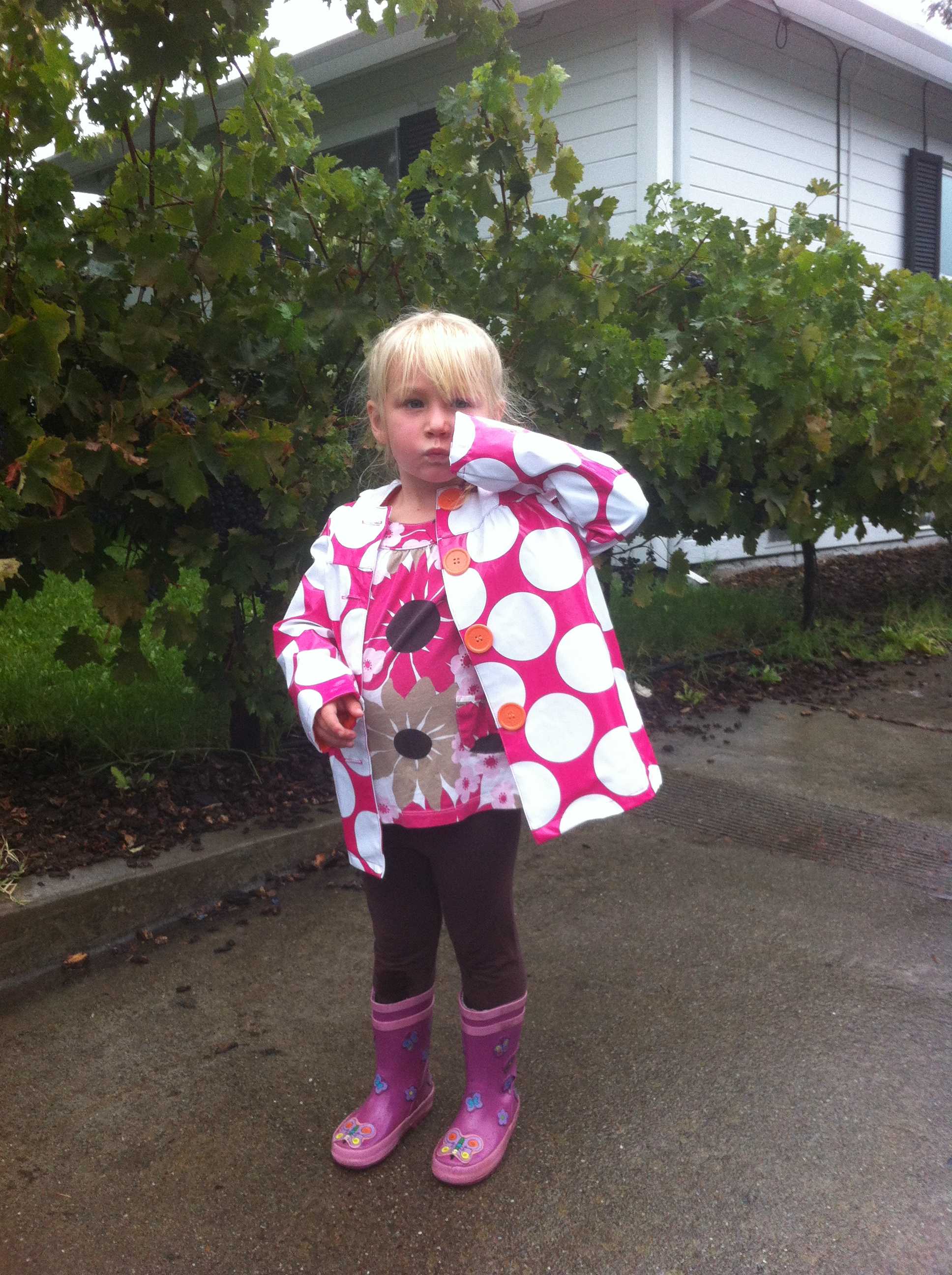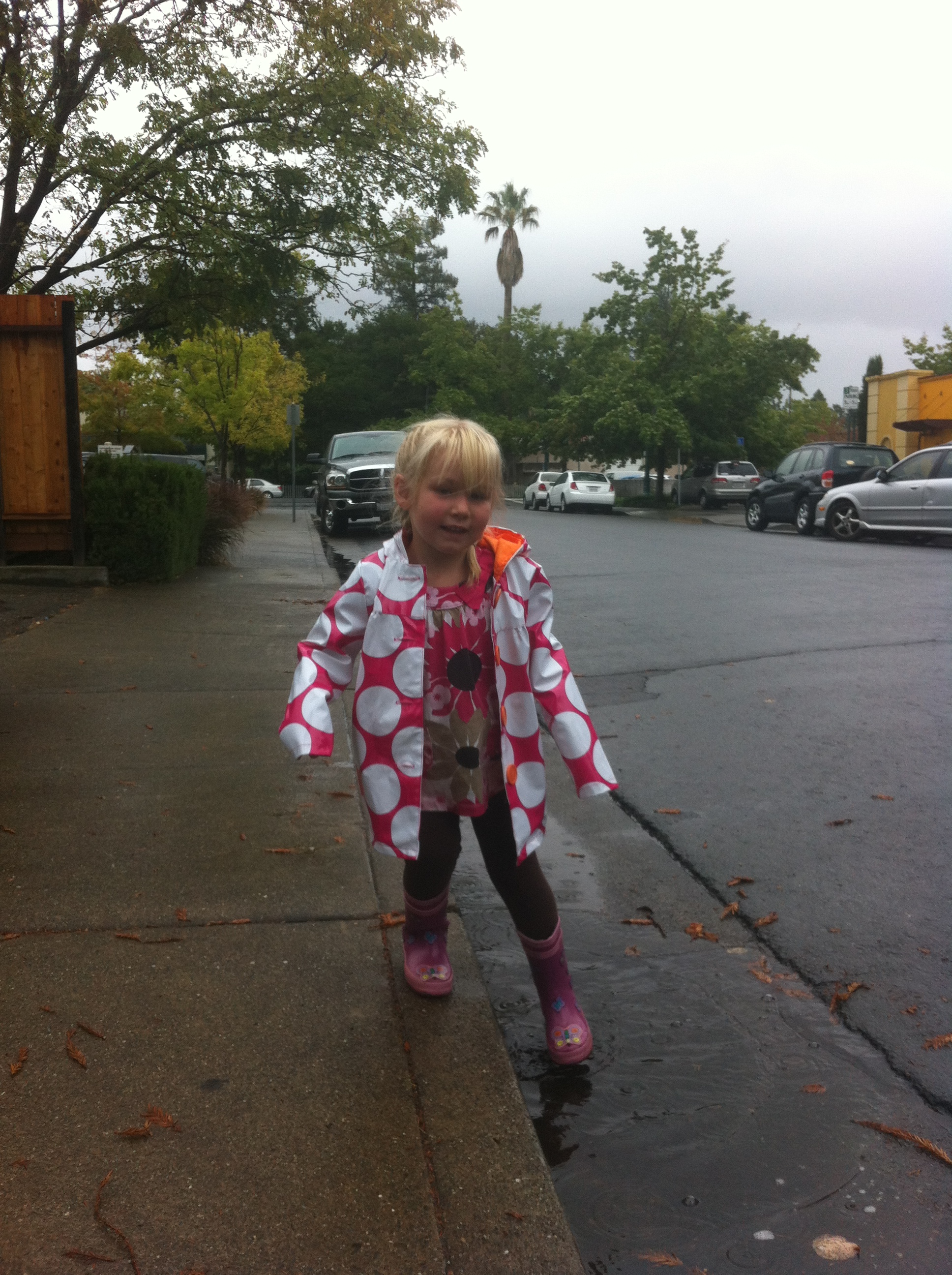 One rainy Saturday, Sierra and I decided we’d make a day of it and head over to Petaluma after dance class to do some errands. We were both happy to have some rain. Sierra was all geared up and ready to jump in puddles!