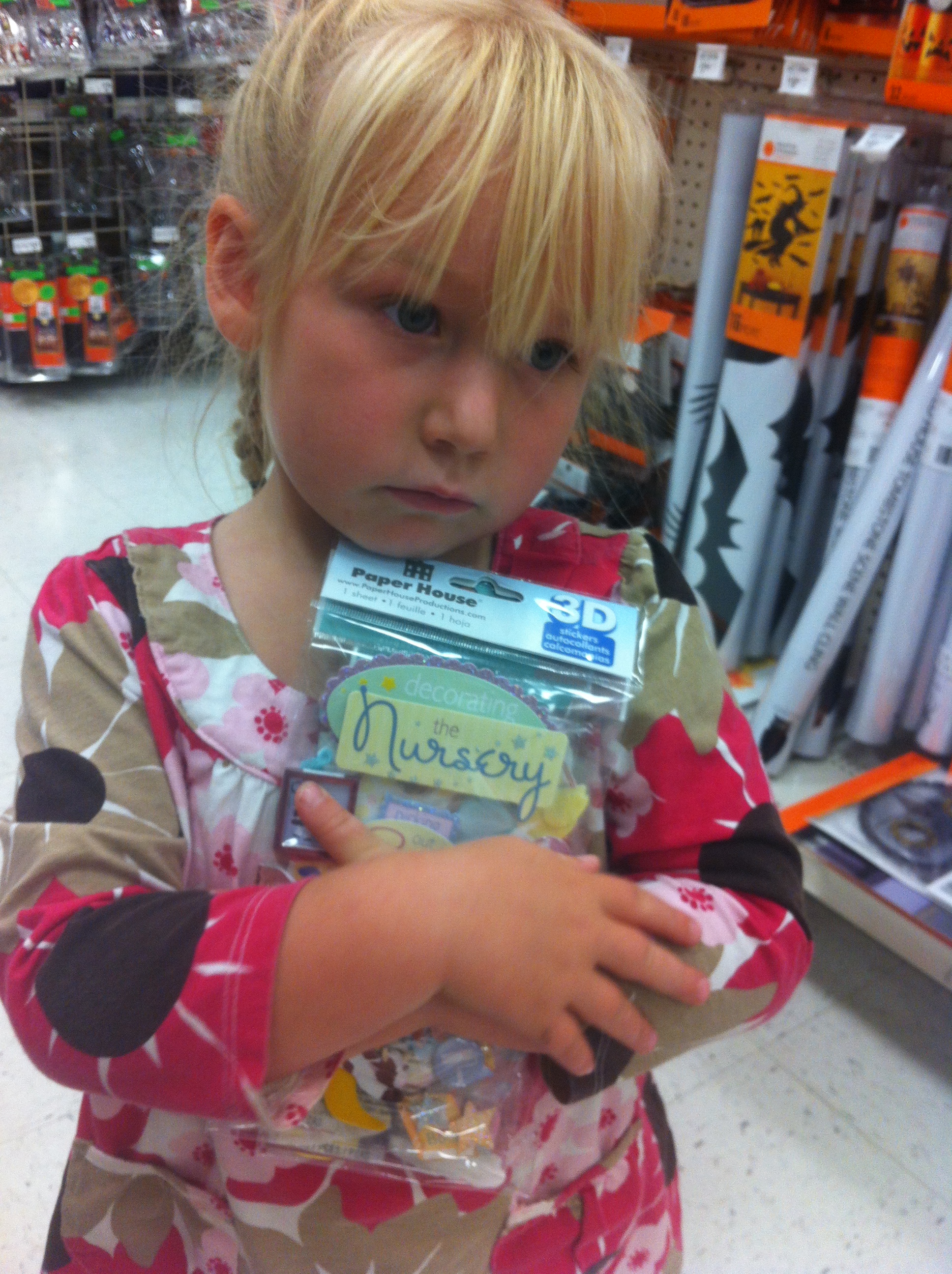 At Michael’s, I bought lots of scrapbooking supplies. Sierra was very attached to this little set of nursery items so I took this picture and told her I’d put it on her wish list.