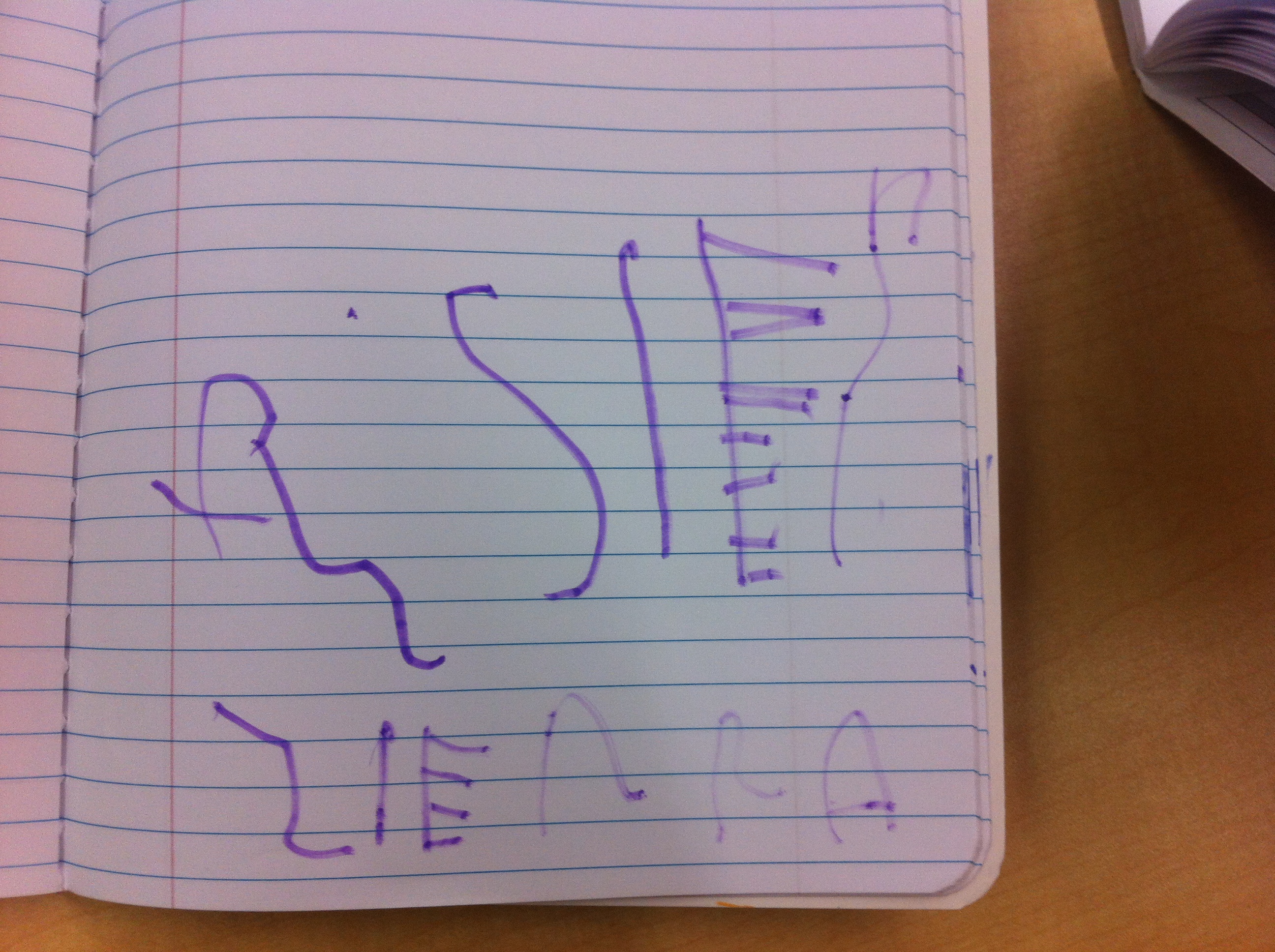 Sierra surprised me by writing her name for the very first time this month! This is from her preschool journal.
