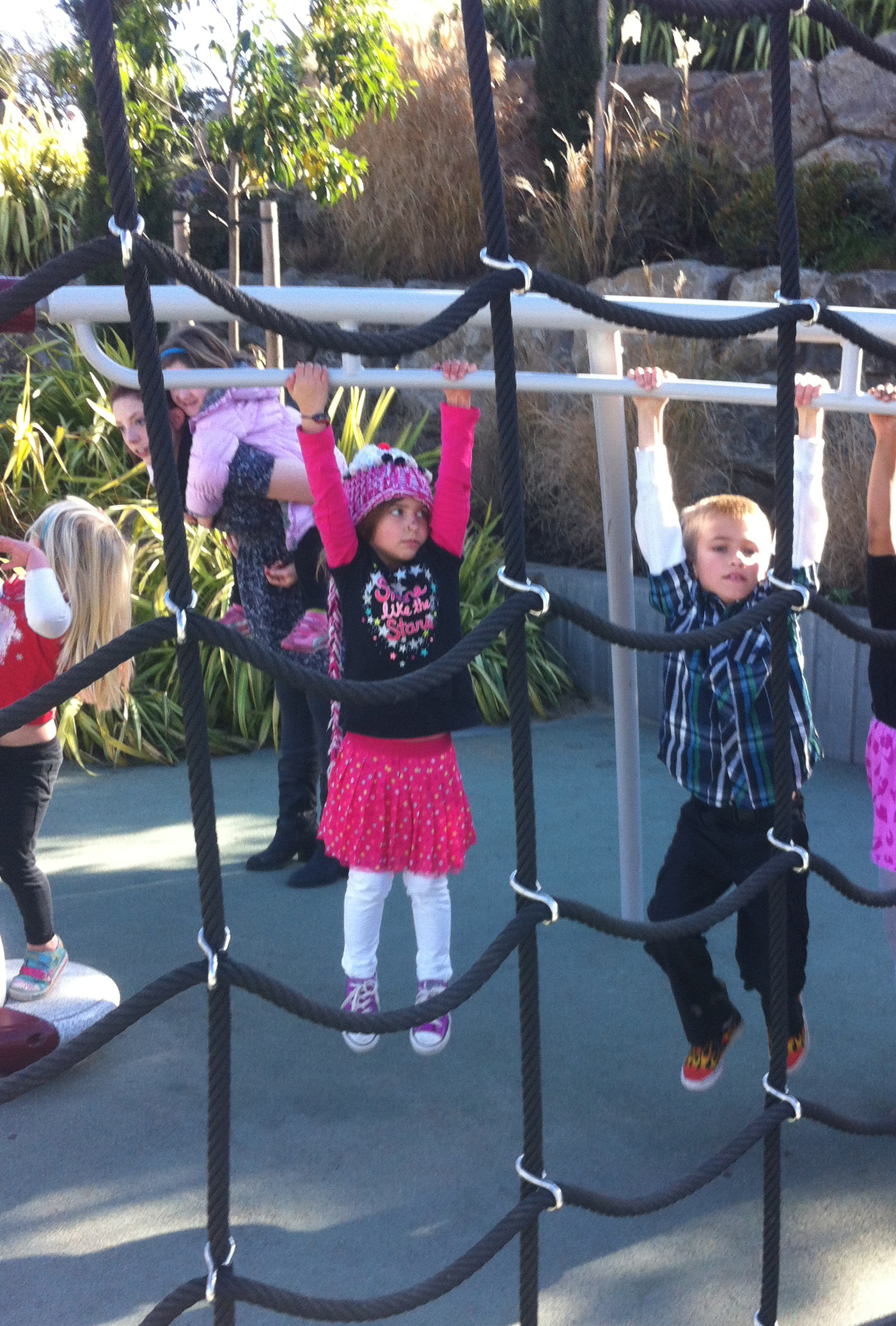 Since the Tea Garden went so quick, we had time to head over to a park we discovered earlier this year, the Helen Diller Playground at Dolores Park. We had packed lunches to eat on the way there, which left a full 45 minutes for the kids to play before we headed to the Nutcracker Matinee.
