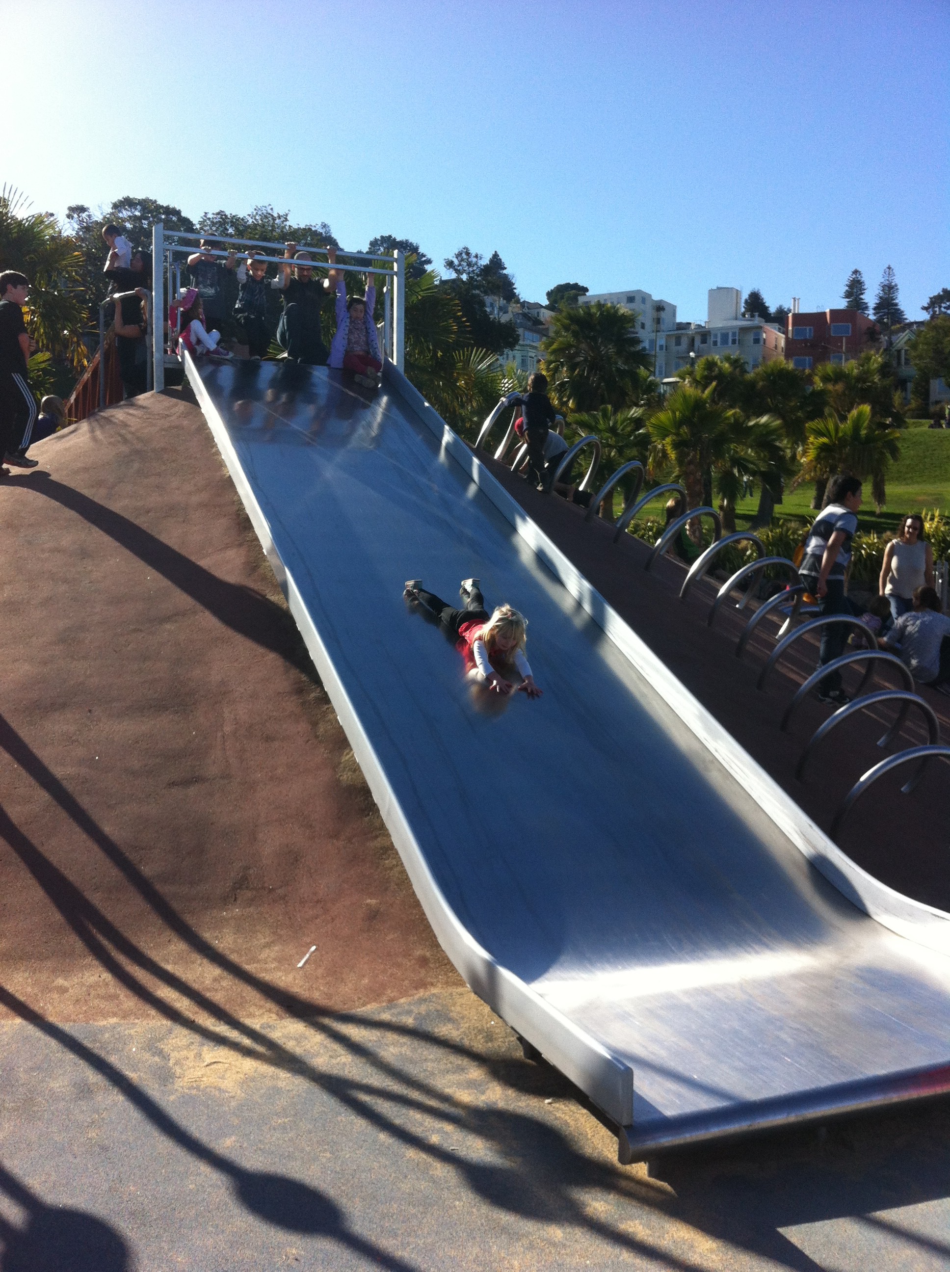 The Helen Diller playground is quite unique, with a super long slide and super wide slide that dominates the play area and the kids’ attention there. The only tough part of going on a sunny Saturday was that the playground was quite full! Of course, the kids didn’t think they had enough time to play, but we had to move them on when it got close to 1pm.