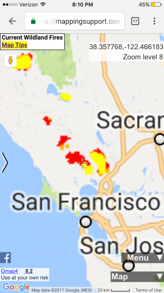 Tim was not in a hurry to head to the house, and it turned out, that even though the kids, the night before, had complained that they didn’t get to go back with us on Tuesday, they suddenly didn’t want to go either to retrieve their things. What line do you take when you know they may regret the decision? But what will you/they regret more? Not getting to retrieve things, or seeing the house in danger and being scared for the next few days if possibly all would be ok? End the end we let them make the decision and they all decided not to come with us. And we didn’t head up until 10:30am. Tim felt that the evacuations wouldn’t happen early in the day, if they were to, so he wasn’t in a hurry. But I was. Our neighborhood and area of town was now on the Bay Area News – the fire was continuing to get closer to our home. And over the night the evacuation orders had inched ever closer around us.
