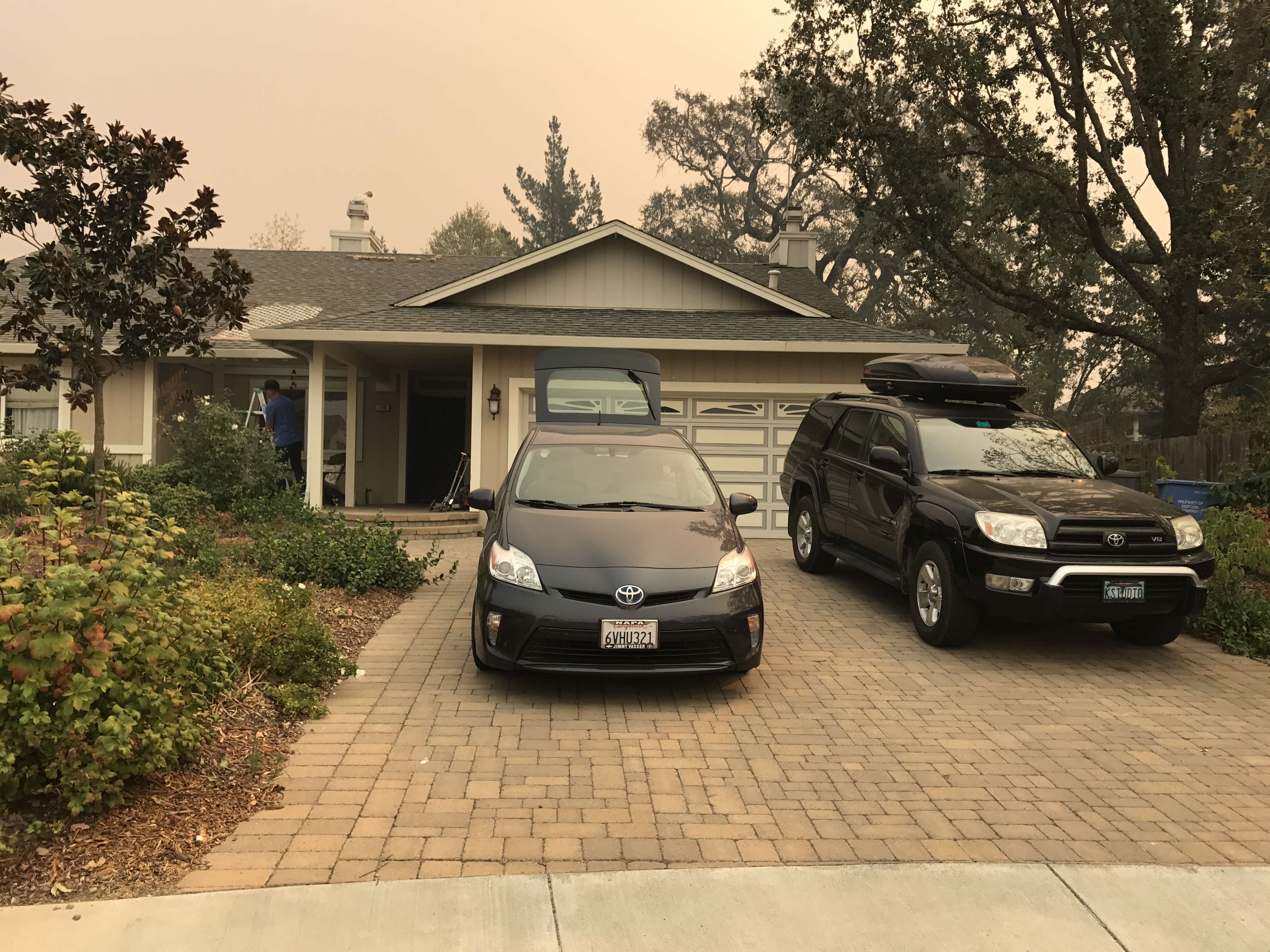 We regularly relied on the maps showing satellite detections of fire, without a lot of reporting going on on specific areas to know where the active fires were burning. This map, on Friday night, shows red circles on top of our neighborhood and home. I feared the worst.But our worst fears weren’t yet abated. On Friday night, I was the most fearful yet, when I pulled up the visuals of our house in the midst of the hotspots shown on the map. I accepted that this might be the news I’d been dreading. My heart was racing once again. We’d been lucky enough to find, each day since we went to Tahoe, someone still in town who could report back to us. Thursday a friend had driven by our house and taken a photo (he was let in because he had special access as an employee of the water district). When we saw the hotspots on the map, Tim had learned that these may just be backfires. So we hoped. I went to bed that night, for the first time, without the alerts off on my phone. I didn’t want the worst news to come to me in a text during the night. In the morning, I braced for bad news. But it never came. The City of Sonoma had more evacuations while another arm of the fire moved towards the center of town, but there were no specific updates available for our neighborhood. My gut said, if our neighborhood had burned, someone would have told us. But without specifics, it was still unsettling. That feeling lasted until 4pm when someone was able to drive by and take a photo of our house, still standing. There was even sunshine and some blue sky behind it!