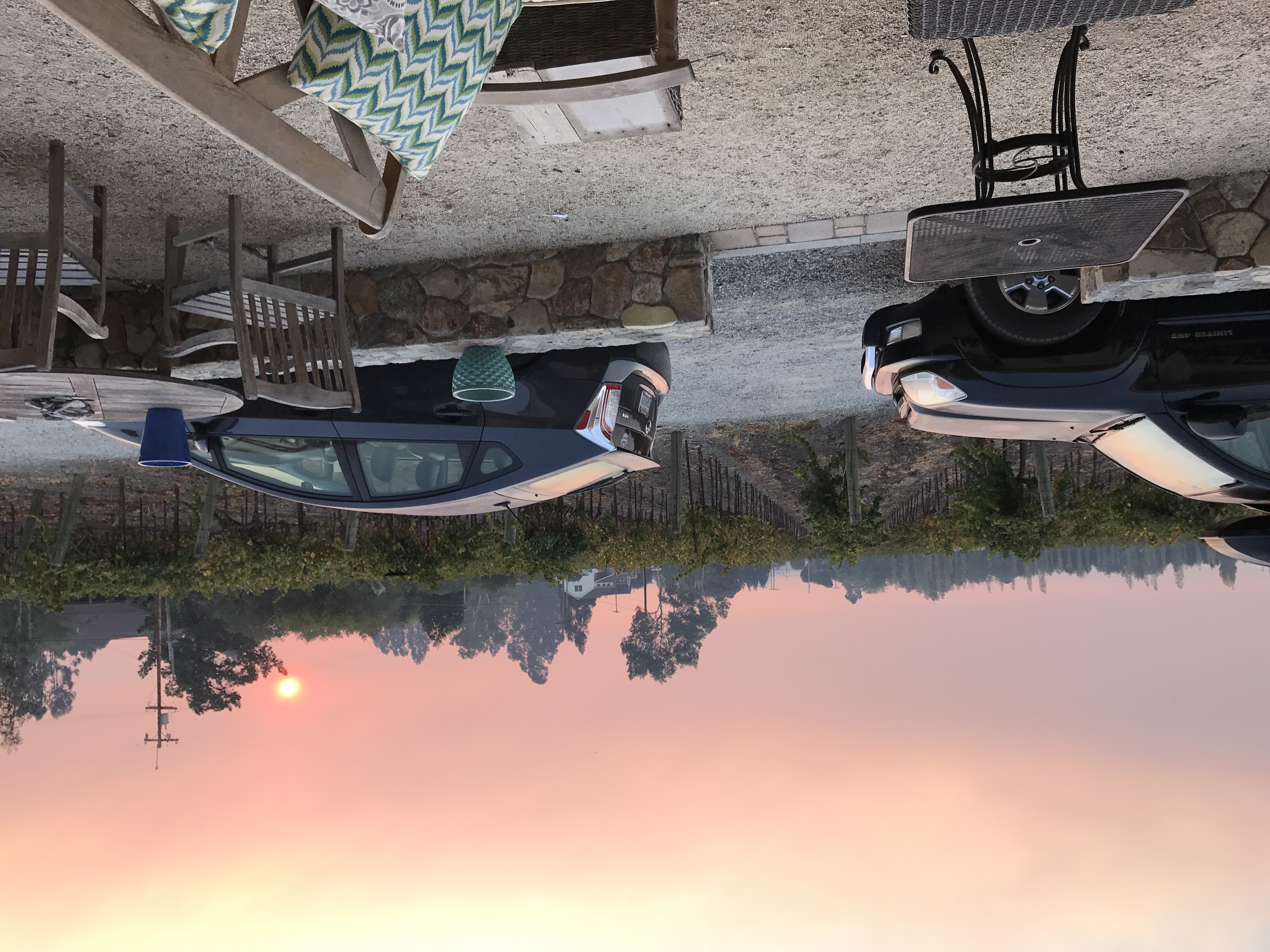 And not much longer into my collecting, Tim said the Sheriff had come and told us we needed to evacuate. I hadn’t found everything, but I had found most of the things I really wanted. I knew, now, that I had done the best I could to save the few things that I could to have memories from. We delayed a bit longer, after the Sheriff came by, but as I was running through the house trying to find last items I started to think – this is what they say not to do – not to wait after you’ve been told it’s unsafe. Not to think you can outsmart something like this just a little bit longer. It was very smoky – even though the fires were closer than they’d ever been, we couldn’t see them at all. There was just this strange, fire-like weather storm feeling in the air. We walked out on the driveway together I felt a tear near ready to fall and held it at bay. Tim and I hugged and looked back at our house. Thoughts ran through my head. “This was our experiment together, to move to Sonoma, to buy this house. Who would’ve thought it may end this way? But we did good, together, and if this is the last we see of this home, so it is to be. We’ll get through this, together,” I thought.